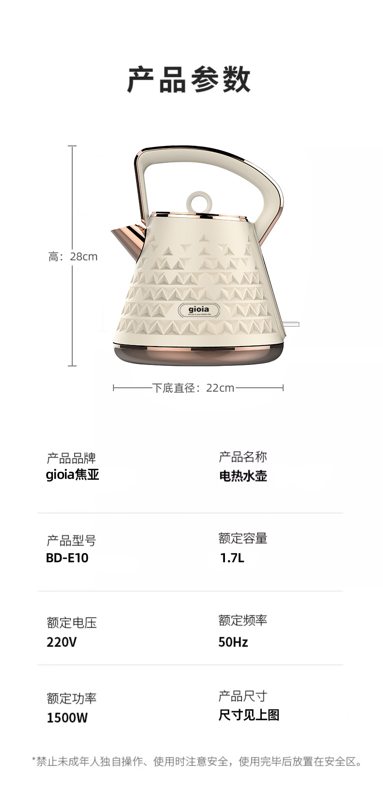 Gioia Electric Kettle, Household Large-Capacity 304 Stainless Steel Kettle, Automatic Power-Off Insulated Kettle